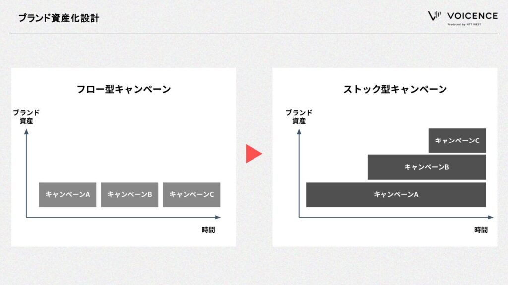 しかし、情報が飽和する現代において、多くの企業が直面している本質的な課題は、「次の打ち手がない」ではなく、施策が単発のキャンペーン(フロー)として消費されており、「ブランドとしての資産(ストック)」が積み上がっていないということです。
